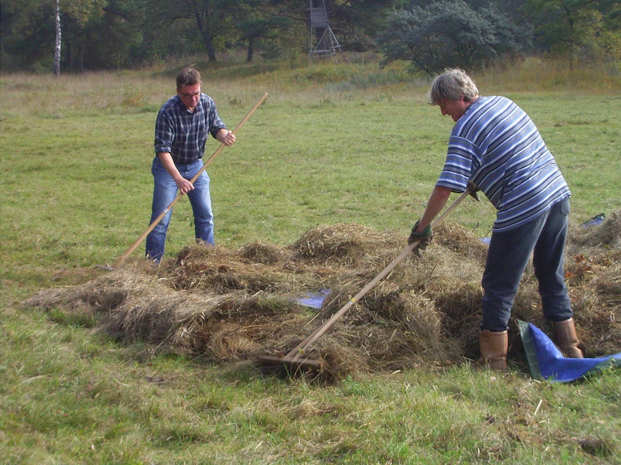 Unser Biotop "Am Jackl" in Knoglersfreude ist reich an Naturschätzen: Die 4,1 Hektar große Biotopfläche stellt einen wertvollen Lebensraum für Flora und Fauna dar. Darunter sind zahlreiche gefährdete und stark gefährdete Arten, wie z.B. Laubfrosch, Ringelnatter, Baumpieper, Wendehals, gemeiner Wasserschlauch und Knabenkraut. Um dieses artenreiche Kleinod mit seinen charakteristischen Magerwiesen, Kleingewässern und Gebüschen zu erhalten, sind regelmäßige Pflegemaßnahmen unabdingbar. Deshalb wird jedes Jahr im Herbst, mit der tatkräftigen Unterstützung ehrenamtlicher Helferinnen und Helfern eine Fläche von rund 1,5 Hektar von Büschen und Schösslingen befreit und gemäht. Dabei ist es wichtig, die Mahd zusammenzurechen und abzutransportieren. Auf diese Weise wird verhindert, dass sich der Boden mit Nährstoffen anreichert und es zur Verbuschung kommt und die Fläche als Magerrasen erhalten bleibt. Weitere Informationen rund um den aktiven Naturschutz und zur Biotoppflege finden Sie unter Mitmachen.