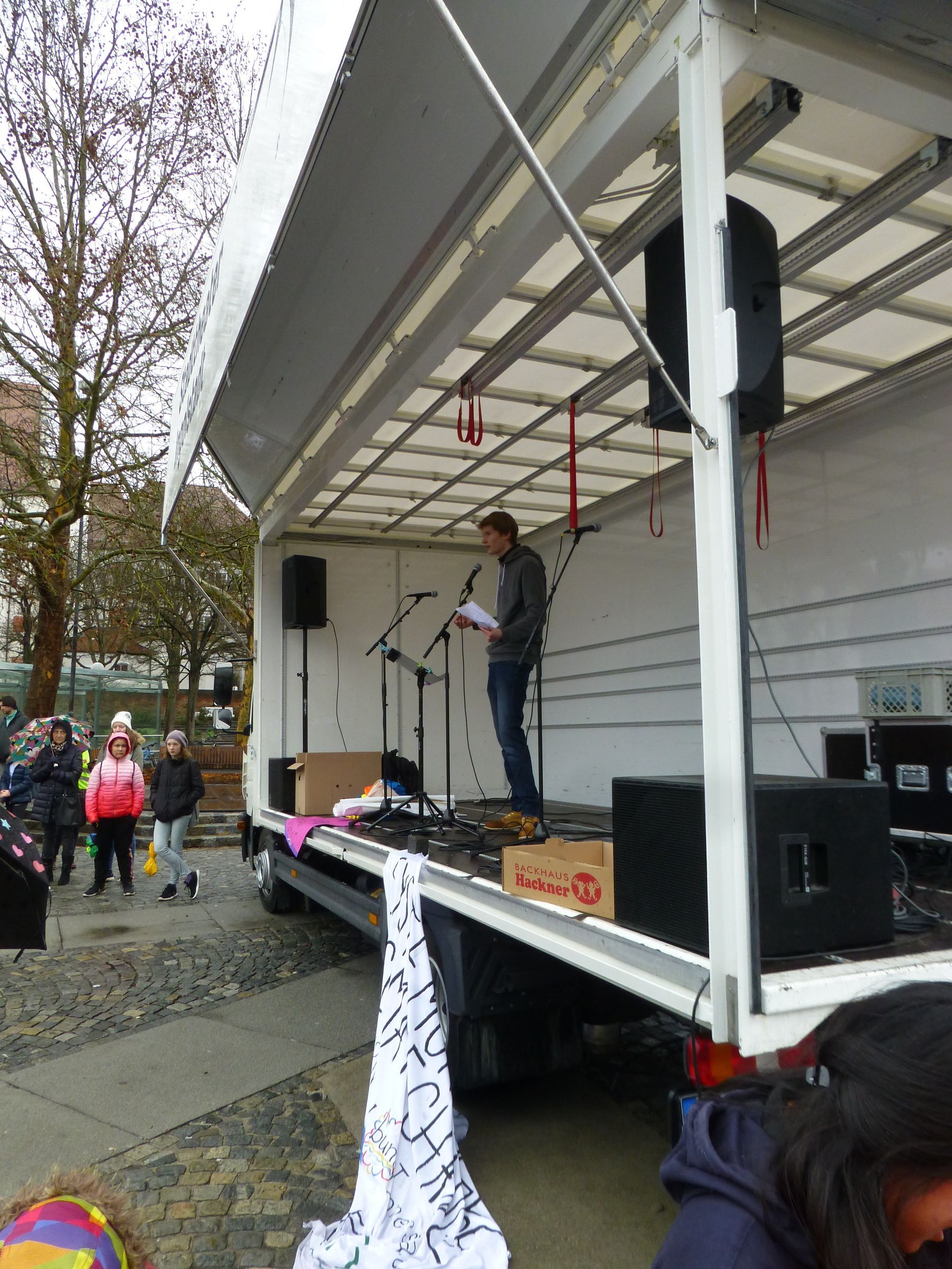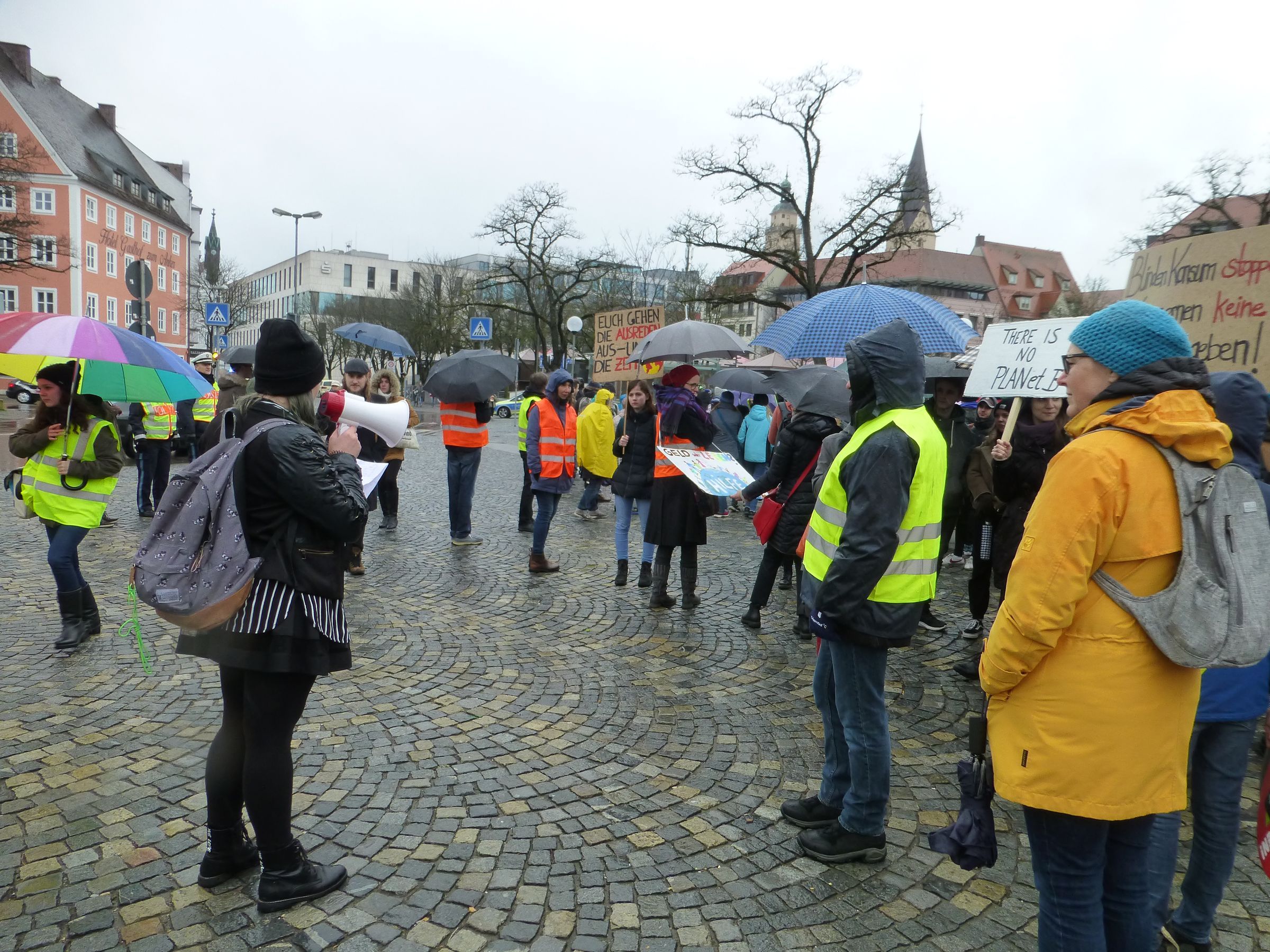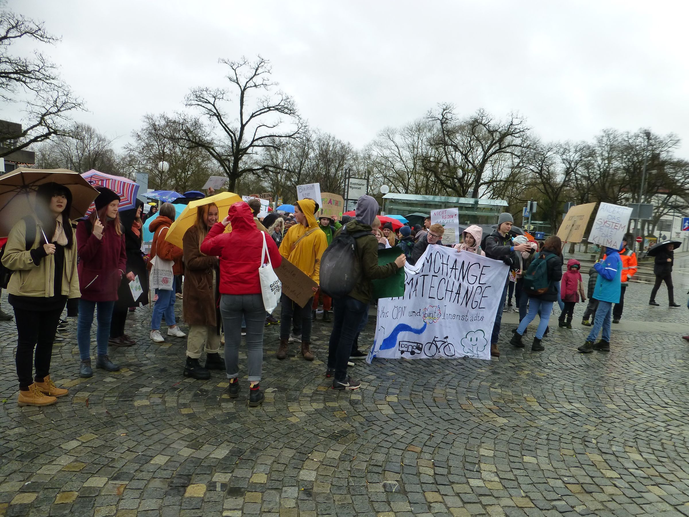 Trotz regnerischem Wetter machten sich über 300 Schülerinnen, Schüler, Eltern und Großeltern, Lehrer, Schauspielerinnen... auf dem Weg zur Fridays for Future Demo auf dem Theaterplatz.