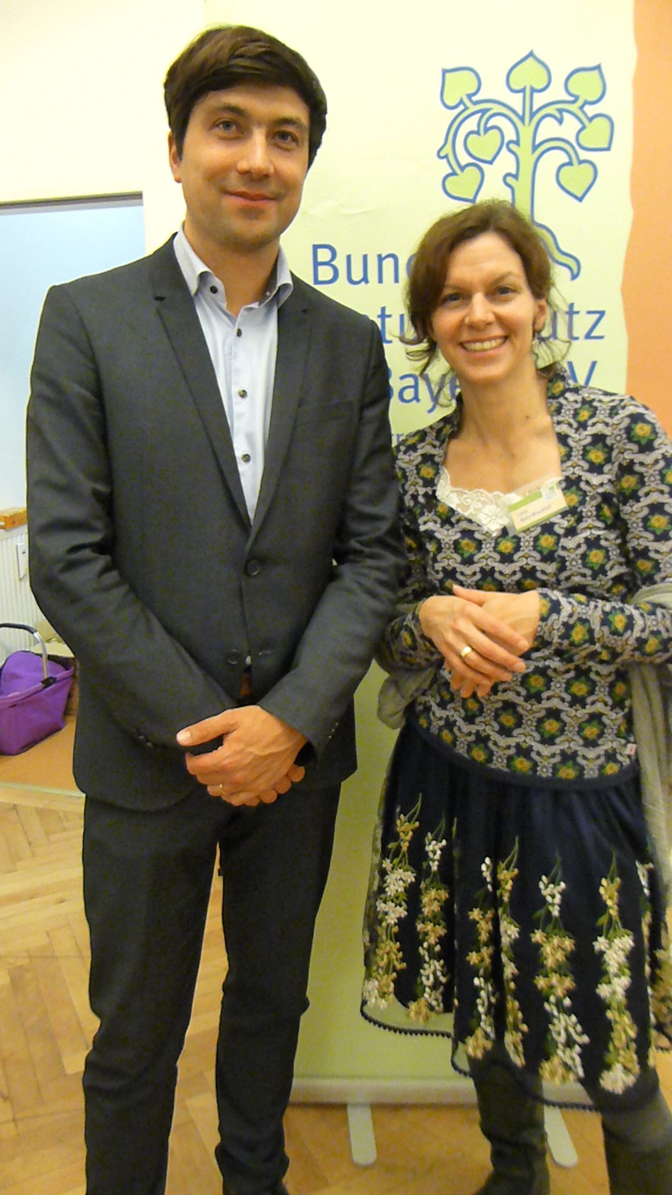 Besondere Highlights waren das Interview zweier Baumpaten, die begeistert über "ihre" Bäume erzählten, die Auszeichnung zum schönsten Frühjahrsstadtbaum sowie die Vorstellung der aktiven Jugendgruppe. Wie wichtig die vielfältigen Aktivitäten der Kreisgruppe sind, erörterte der Kreisvorsitzende Michael Würflein in seiner Rede über die Notwendigkeit von "Weniger ist mehr" angesichts der dringend notwendigen, aber schleppenden weltweiten Ressourcen- und Klimaschutzmaßnahmen. Welche Bemühungen dazu in der Stadt verwirklicht wurden und welche geplant sind, darauf ging kurz Herr Oberbürgermeister Dr. Lösel zur Eröffnung des Empfangs ein. Martin Geilhufe, Landesbeauftragter des Bund Naturschutz Bayern, setzte die Arbeit der BN Kreisgruppen und des Landesverbandes in den gesellschaftlichen und umweltpolitischen Kontext.
