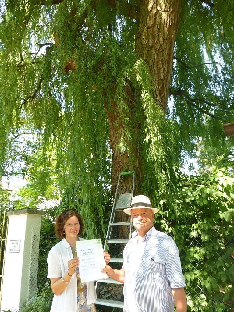 Bereits zu unserer Jahreshauptversammlung im Frühjahr 2017 haben wir die Weide von Herrn Dr. Beer als ersten Stadtbaum des Jahres gekürt. Nun wurde der Baum mit einem Schild versehen - für alle sichtbar ein Zeichen für "Mehr Grün und Vielfalt in der Stadt".