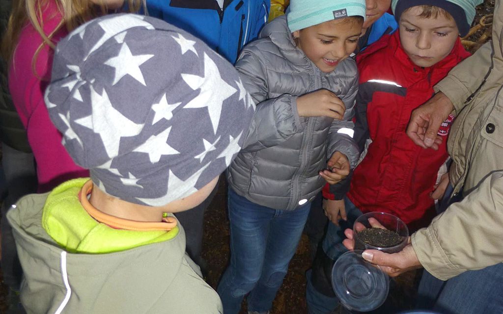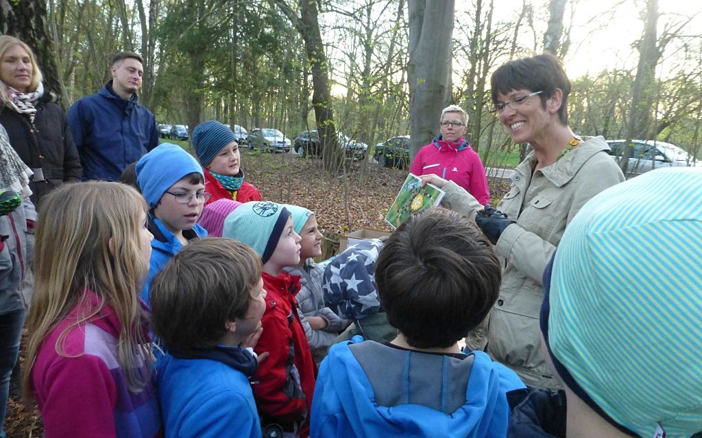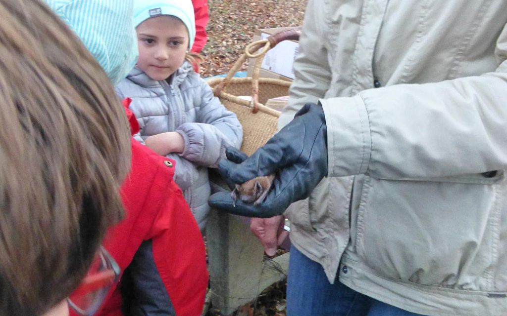 Die Fledermausbeauftrage Kerstin Kellerer erklärte den Kindern und ihren Eltern viel über die Lebensweise der heimischen Fledermäuse und hatte als besonderes „Schmankerl“ einen ihrer Zöglinge in einer Umhängetasche dabei. Bei Dämmerungseinbruch konnten alle den abendlichen Jagdausflug der großen Abendsegler beobachten, die in einem Kasten im Luitpoldpark überwintern.
