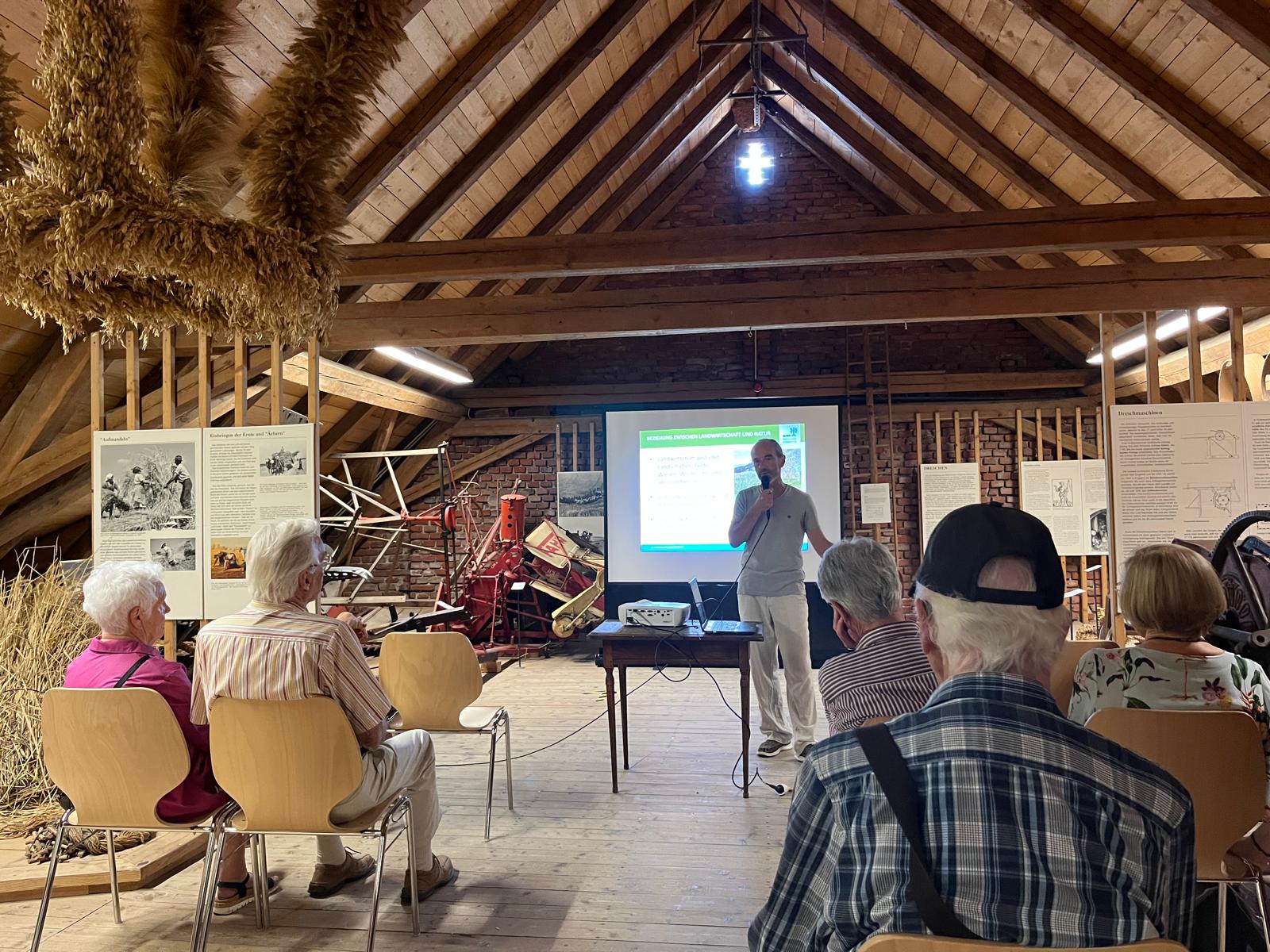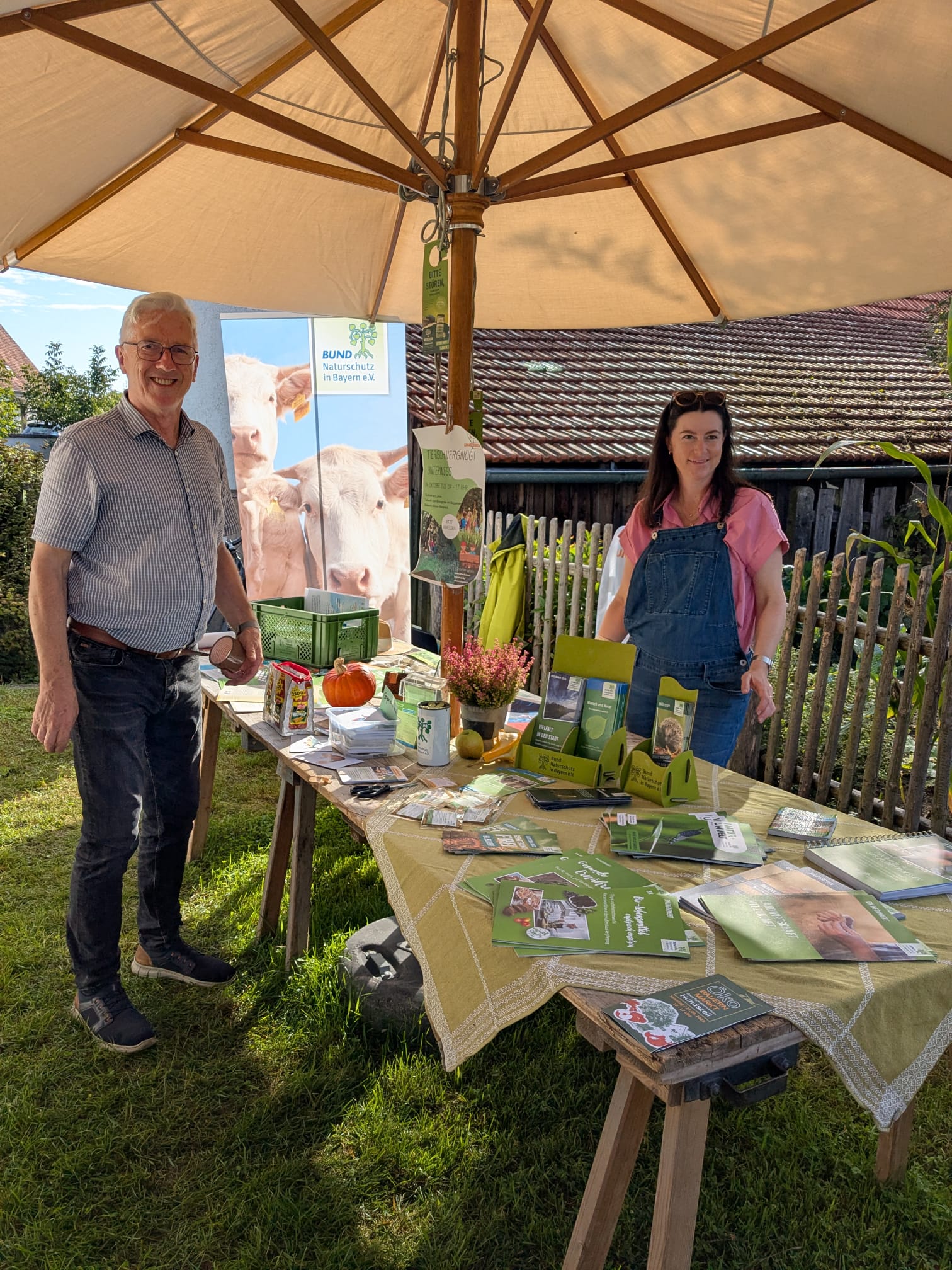 Der Ökobauernmarkt im Bauerngerätemuseum ist immer wieder etwas Besonderes. Bei strahlendem Sonnenschein umso mehr. Unter einem großen Sonnenschirm hatten wir ein großen Stand mit vielen Informationen zum ökologischen Landbau, BUND Naturschutz allgemein sowie unserer Kreisgruppe, zu dem viele bekannte Gesichter aber auch Interessierte gekommen sind. Vielen Dank! Dieses Jahr war der Impulsvortrag von Harald Ulmer, Agrarreferent vom BUND Naturschutz, zum Thema "Landwirtschaft und Natur – Vielfaltschafft Vielfalt: Warum wir die Landwirtschaft für unsere Natur brauchen" ein besonderes Highlight.