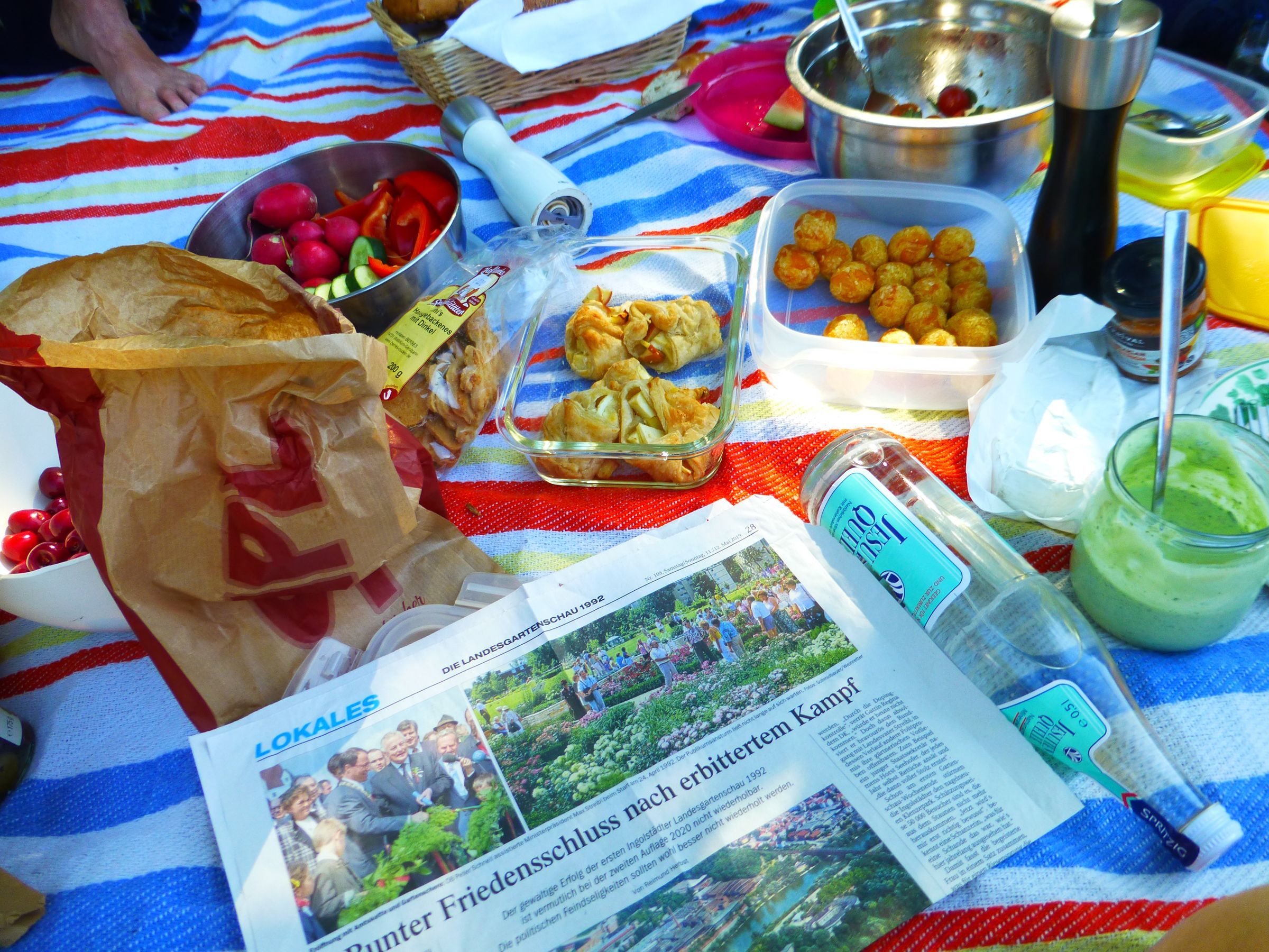 Bei strahlendem Sonnenschein im Schatten der Bäume fand unser kleines, aber feines Picknick statt. Rosmarie Rieß gab einen Einblick in die "alte" Landesgartenschau 1992, die Veränderung des Klenzeparkes und die Einstellung der Bevölkerung. Danach informierten wir über den aktuellen Stand der Planungen für die Landesgartenschau 2020 bevor wir uns über allgemeine Nachhaltigkeitsfragen austauschten.