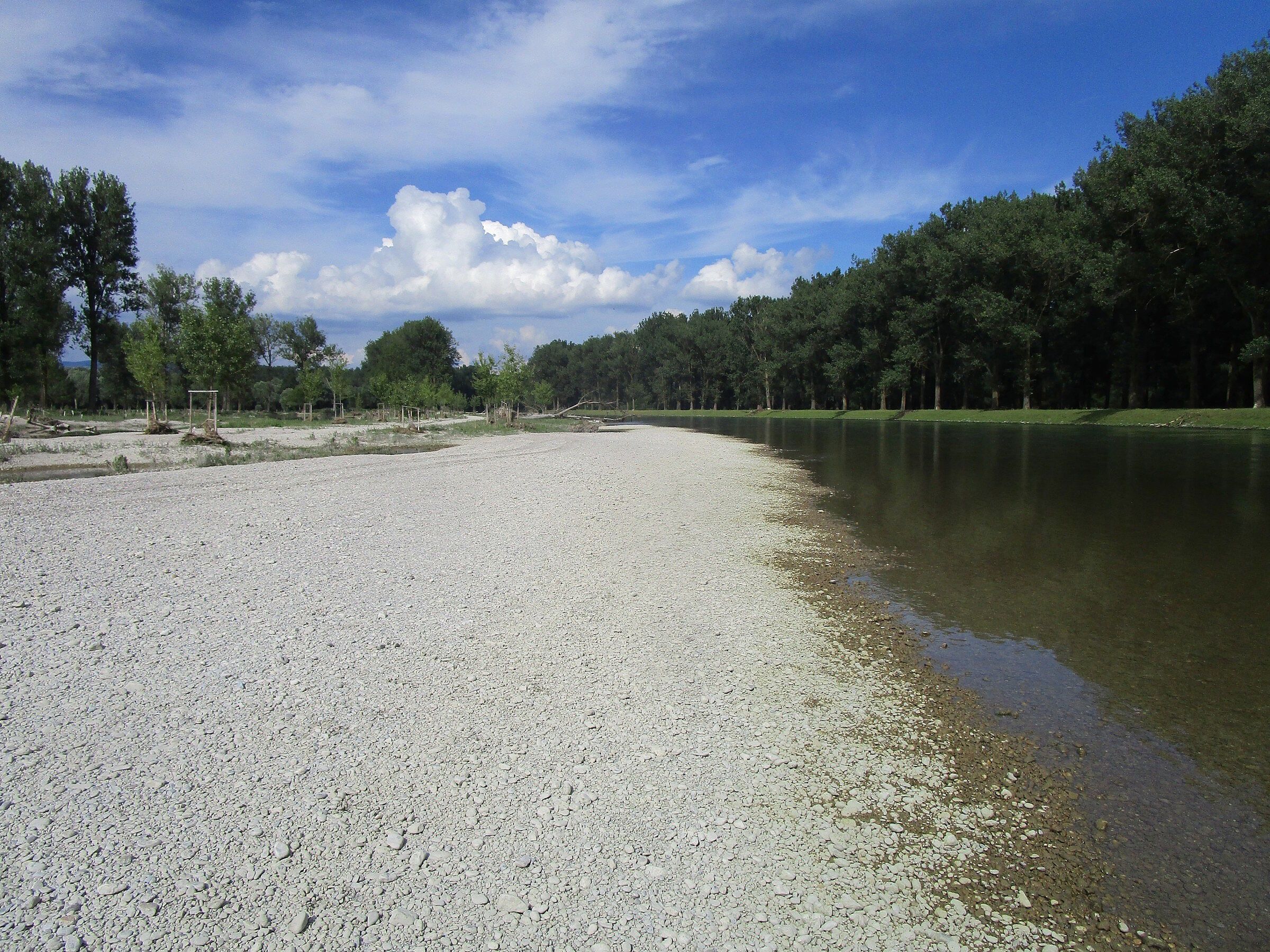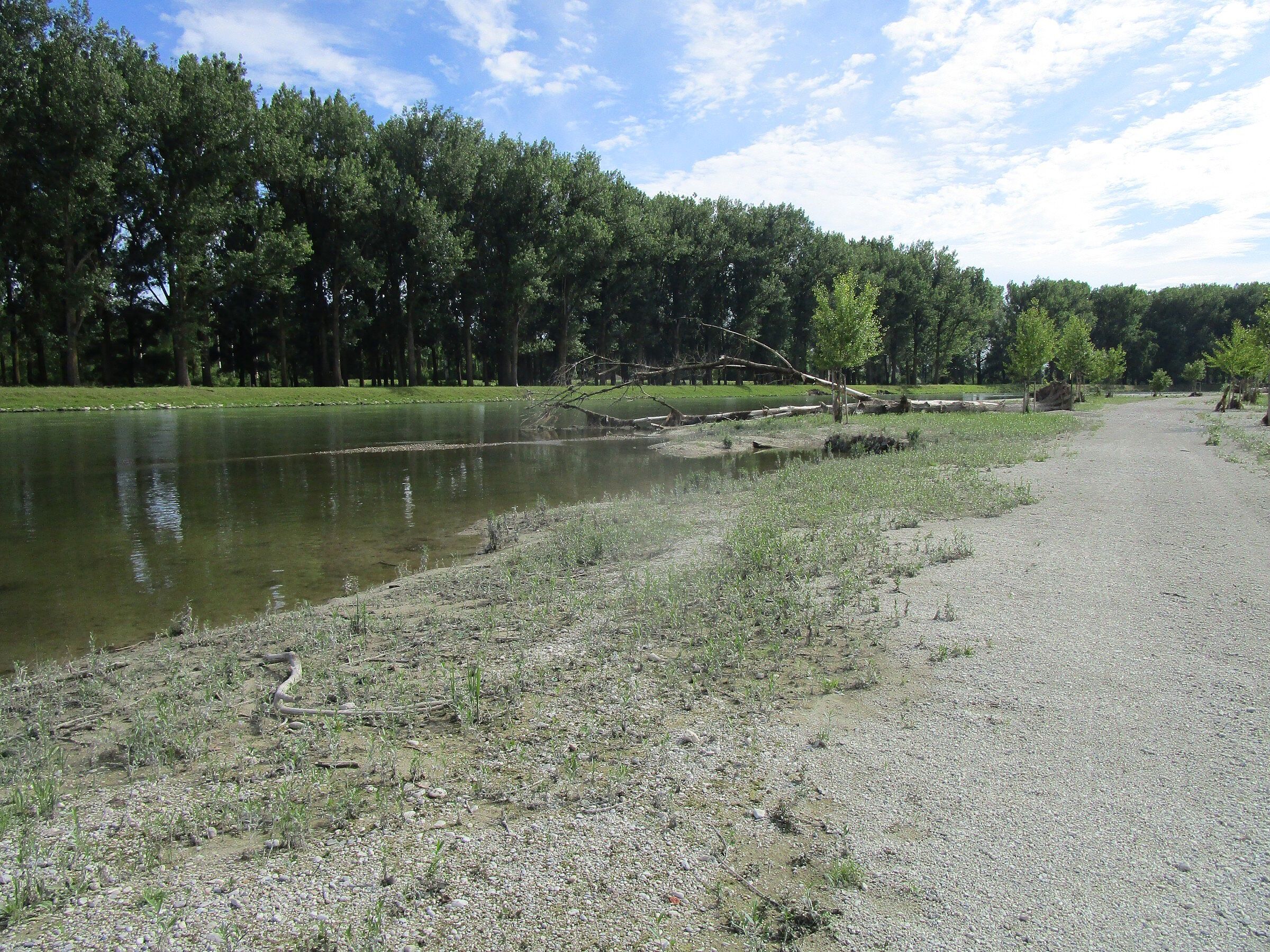 Im Lauf der letzten Jahrzehnte hat sich der Fluss nach unten eingetieft, während die Ufer durch die Anlandung von Schlick nach oben gewachsen ist. Ursache hierfür ist die Staustufe die Geschiebe (also Sand und Kies) zurückhält, der Eintrag von Feinmaterial vor allem bei Hochwasser sowie Flussbegradigung und Uferfixierung mit einem Steinkorsett. Dadurch sind in den letzten Jahrzehnten Kies- und Sandufer, flach überströmte Kiesbänke und die „Kampfzone“ zwischen Land und Fluss mit Weidengebüschen und Silberweidenauwald praktisch verschwunden.